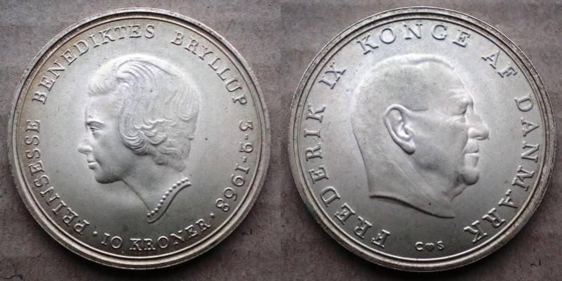 Danija 10 Kronu 1968 Sidabras UNC Nuo.1Lt