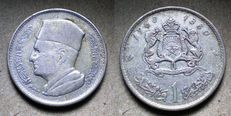 Marokas 1 Dirham 1960 Sidabras Nuo.1Lt