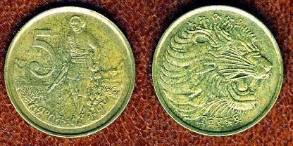 Etiopija 5 centai 1977 m. , KM#44.2, VF+