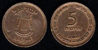 Izraelis 5 prutai 1949 m., KM#10, VF-