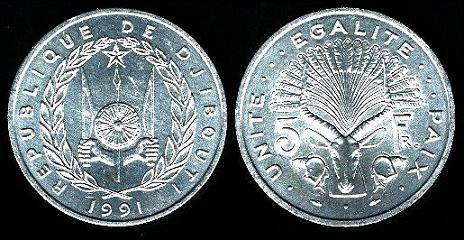 Džibutis 5 frankai 1977 m., KM#22, Unc-