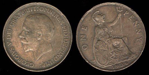 Didžioji Britanija 1 pensas 1929 m., KM#838,VF-