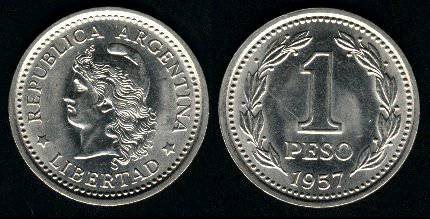 Argentina 1 pesas 1958 m., KM#57, VF