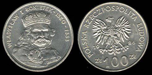 Lenkija 100 zlotų 1986 m. Wladyslaw I, KMY#160, XF