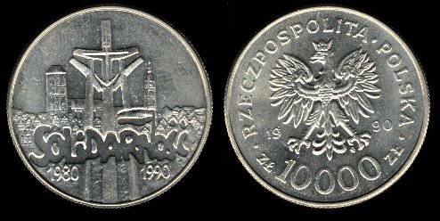 Lenkija 10.000 zlotų 1990,Solidarumas,KMY#195,VF+