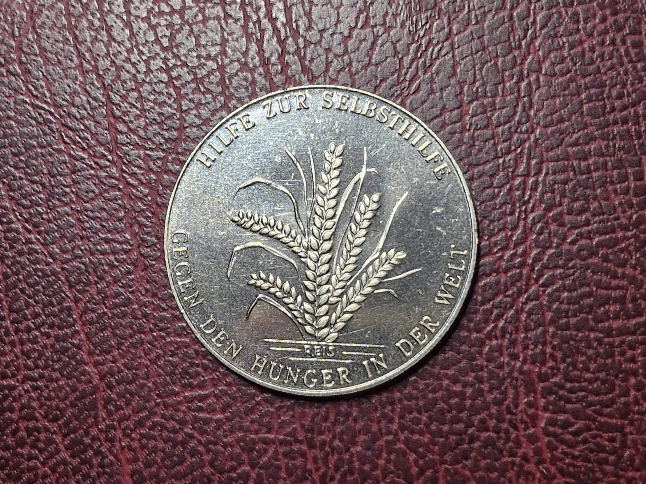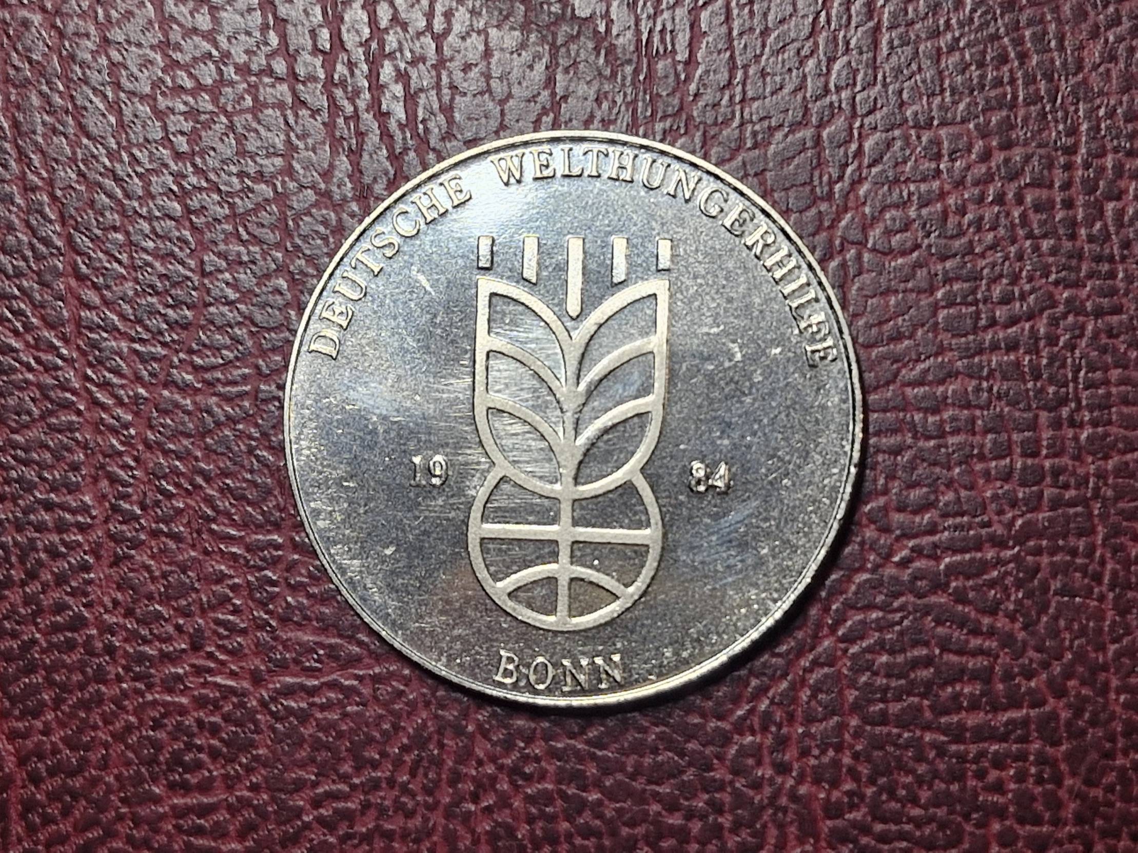 Originalus 1984m. Vokietijos (VFR) proginis atminimo medalis, skirtas organizacijai Deutsche Welthungerhilfte (Pagalba kovai su badu pasaulyje). Išleistas Bonoje kaip paramos simbolis. Skersmuo apie 32mm., Svoris apie 12,5g.