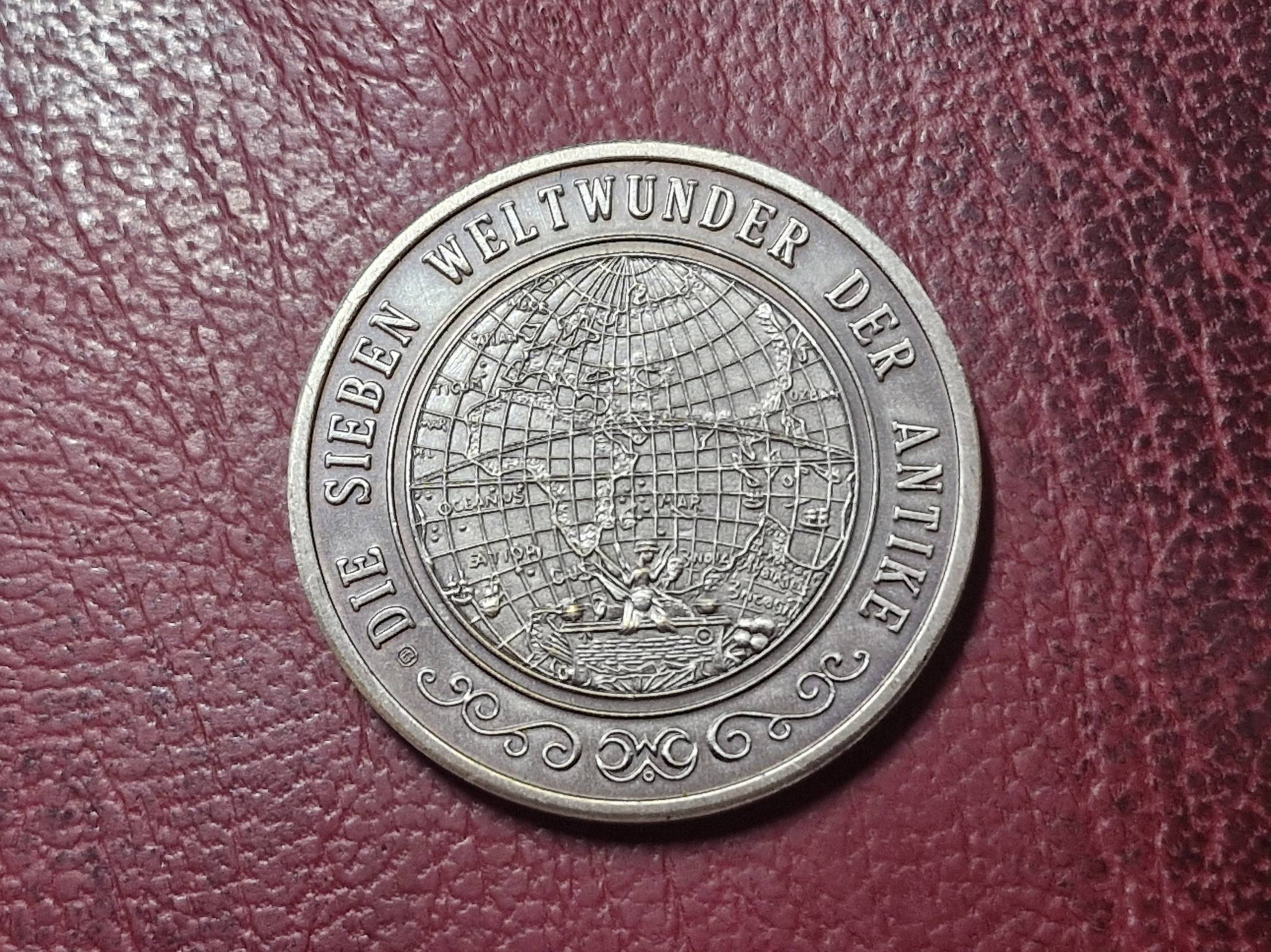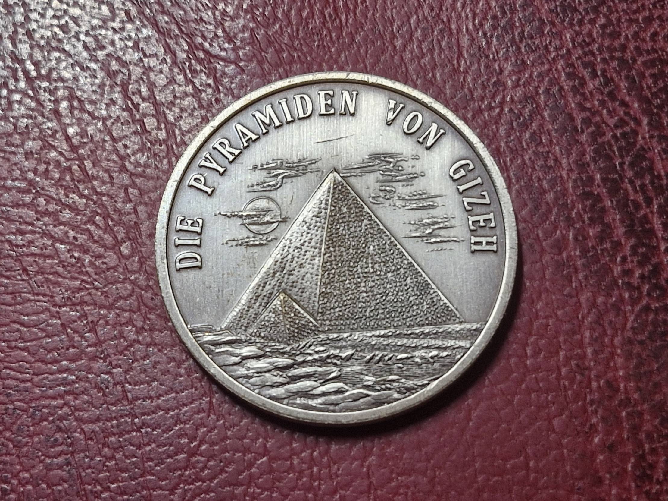 Vokiečių medalis iš serijos "Die sieben Welwunder der Antike", vaizduojantis Didžiąsias Gizos piramides. Skersmuo apie 32mm. Svoris apie 17,5g.