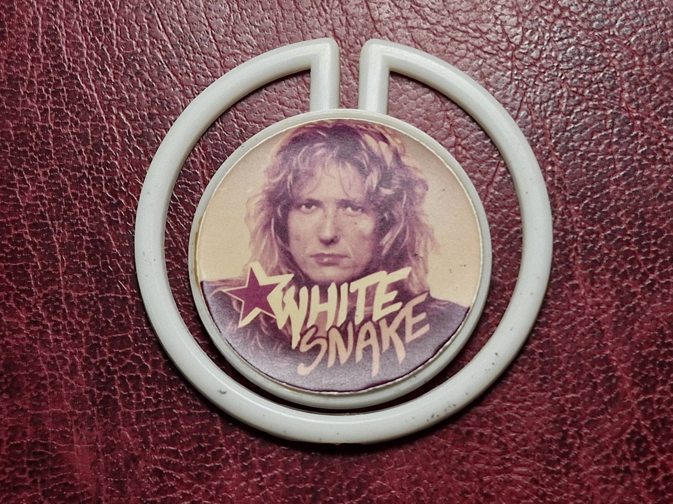 Tai yra vintažinis „Whitesnake“ grupės ženkliukas su Davidu Coverdale'iu, greičiausiai pagamintas 1980-aisiais.