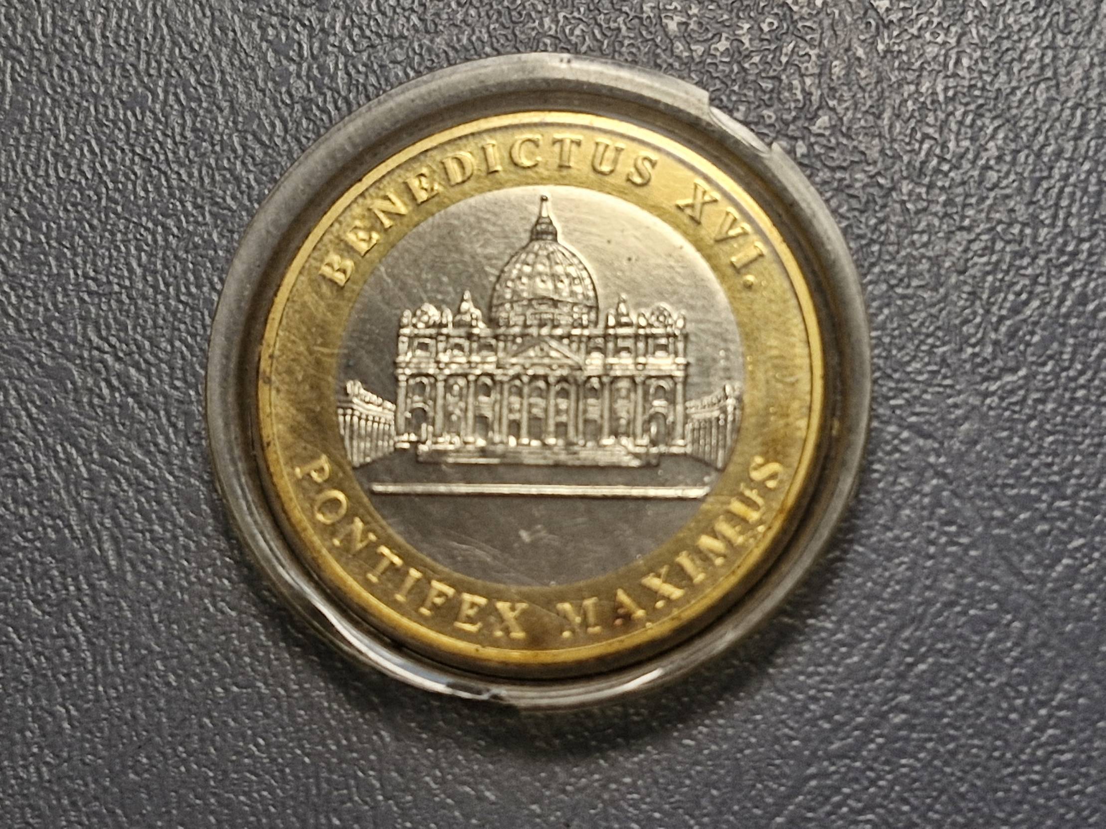 Reversas: Šv. Petro bazilika Vatikane. Užrašas: „Benedictus XVI Pontifex Maximus“.