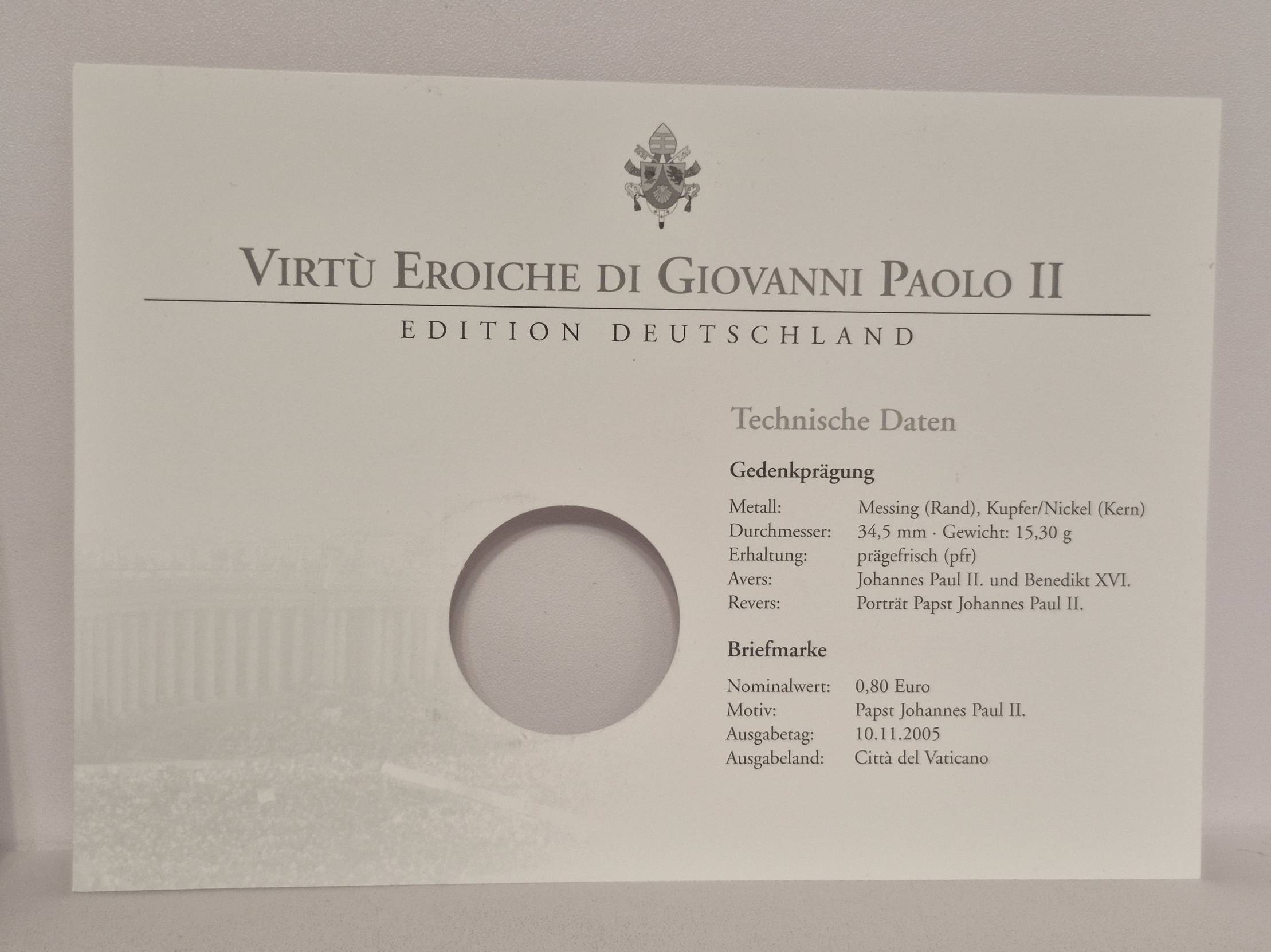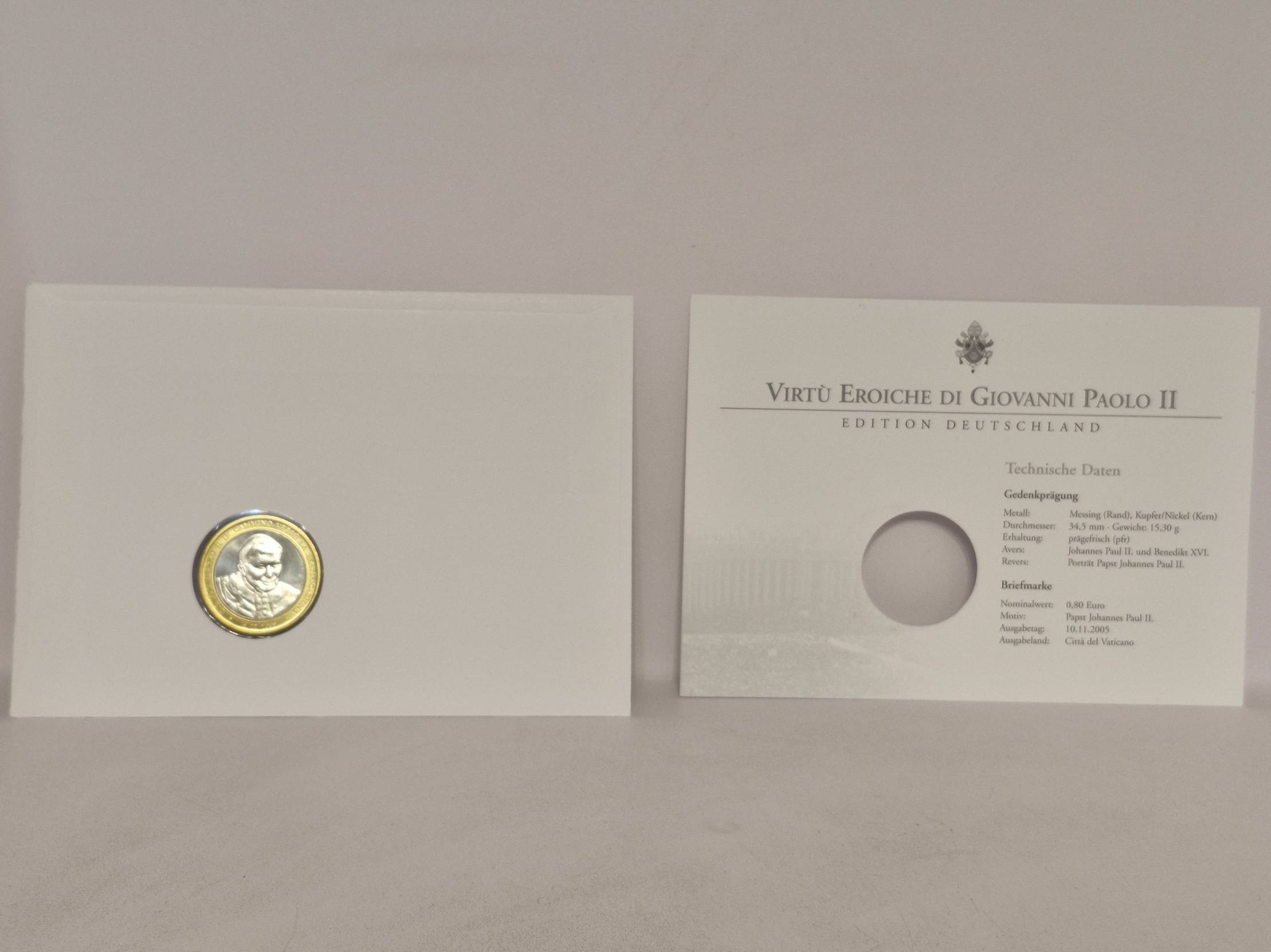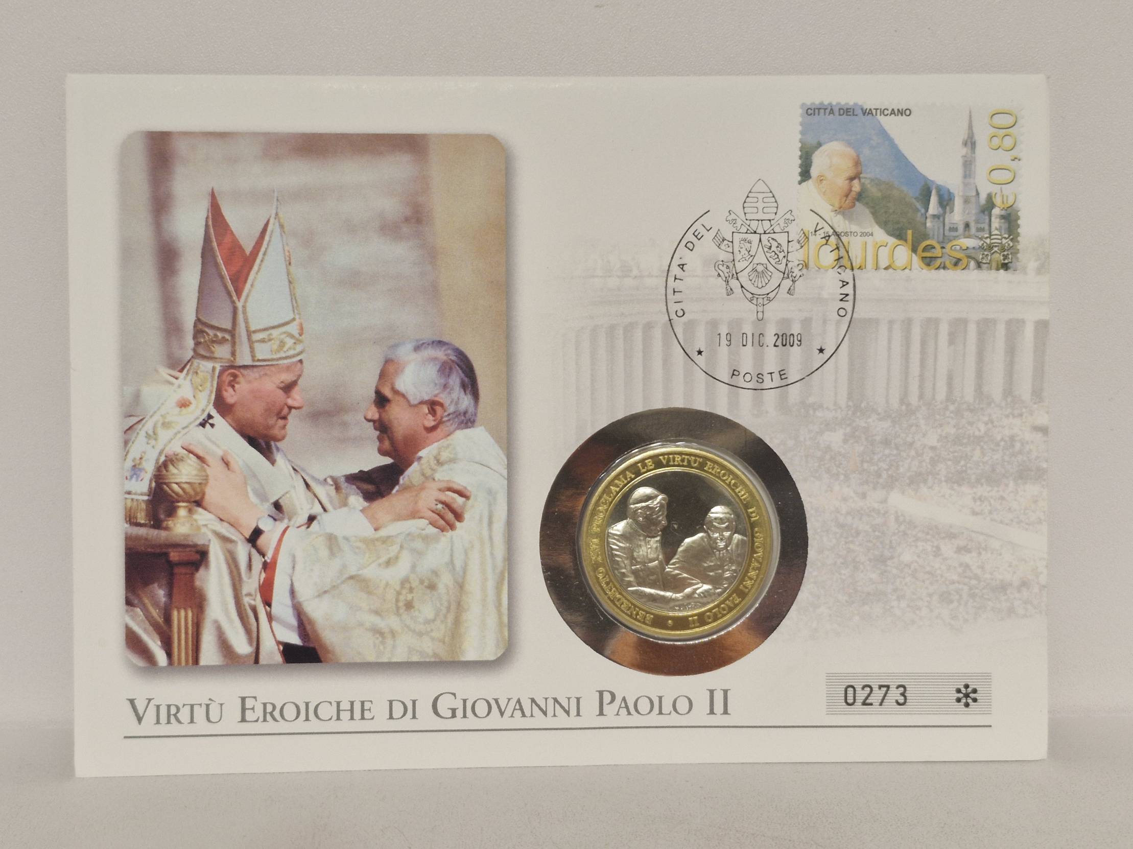 Kolekcinis Vatikano numizmatinis vokas („Numisbrief“), skirtas popiežiaus Jono Pauliaus II „Herojiškosioms dorybėms“ (Virtù Eroiche) paminėti. Tai riboto tiražo leidimas („Edition Deutschland“), turintis unikalų serijos numerį – 0273.