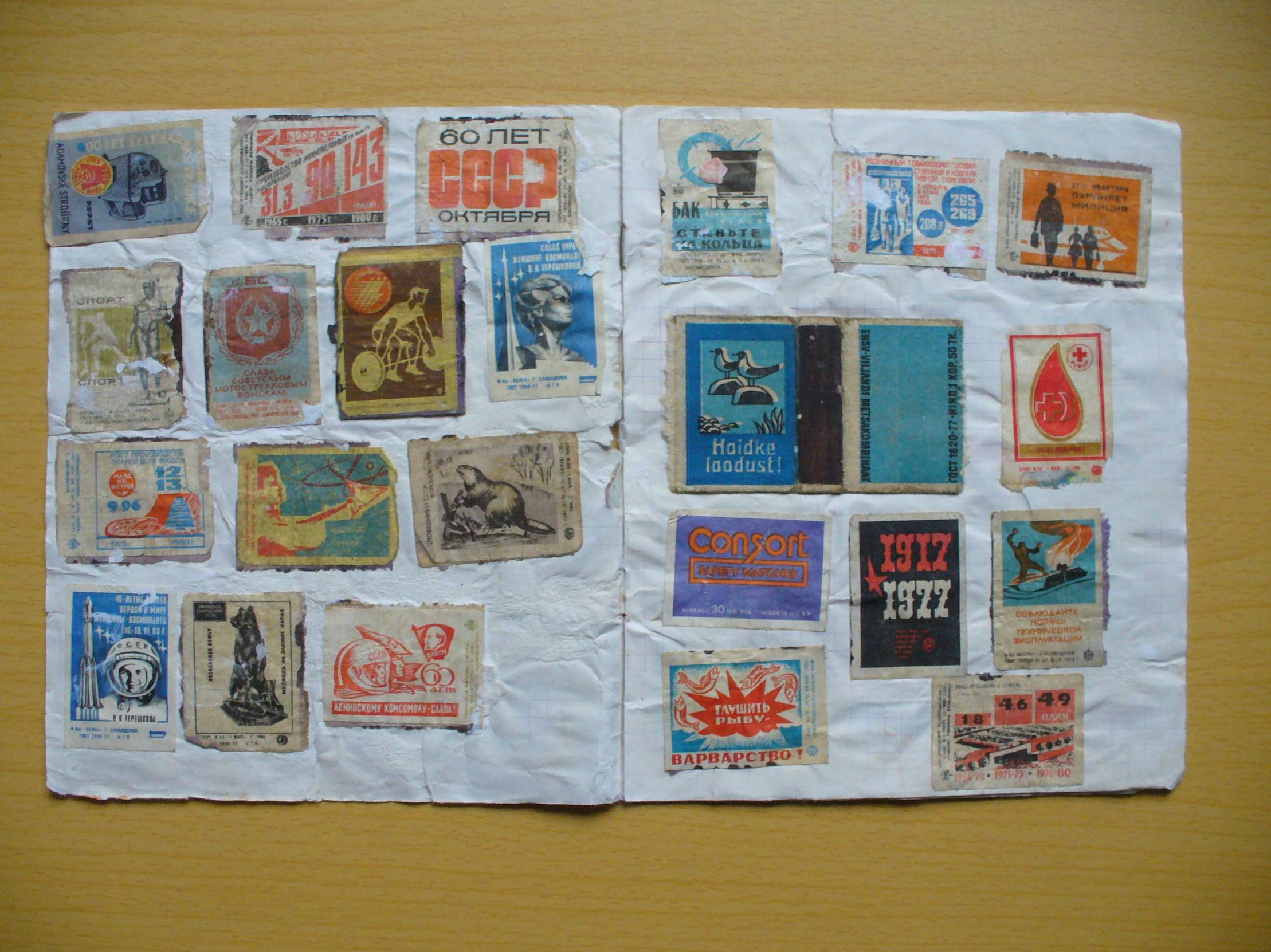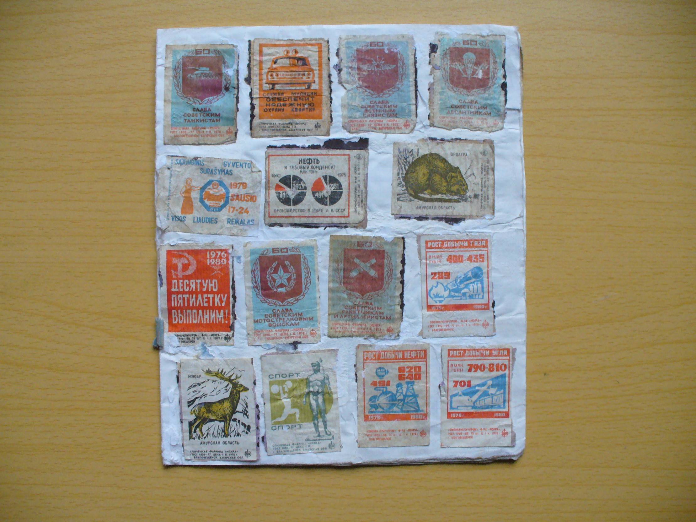 Etiketės kažkieno, kažkada neprofesionaliai ir mėgėjiškai suklijuotos ant sąsiuvinio lapų. Tokios ir papuolė pas mus. Norint kažką su jomis padaryti gero, reiktų bandyti atmirkyti, nuimti ir sudėti į albumus. Ar tai pavyks, nežinau. Kokybė ir taip jų nestebuklinga, matyti visose foto, bet prekė įdomi. Aukcionas nuo 1 cento :)