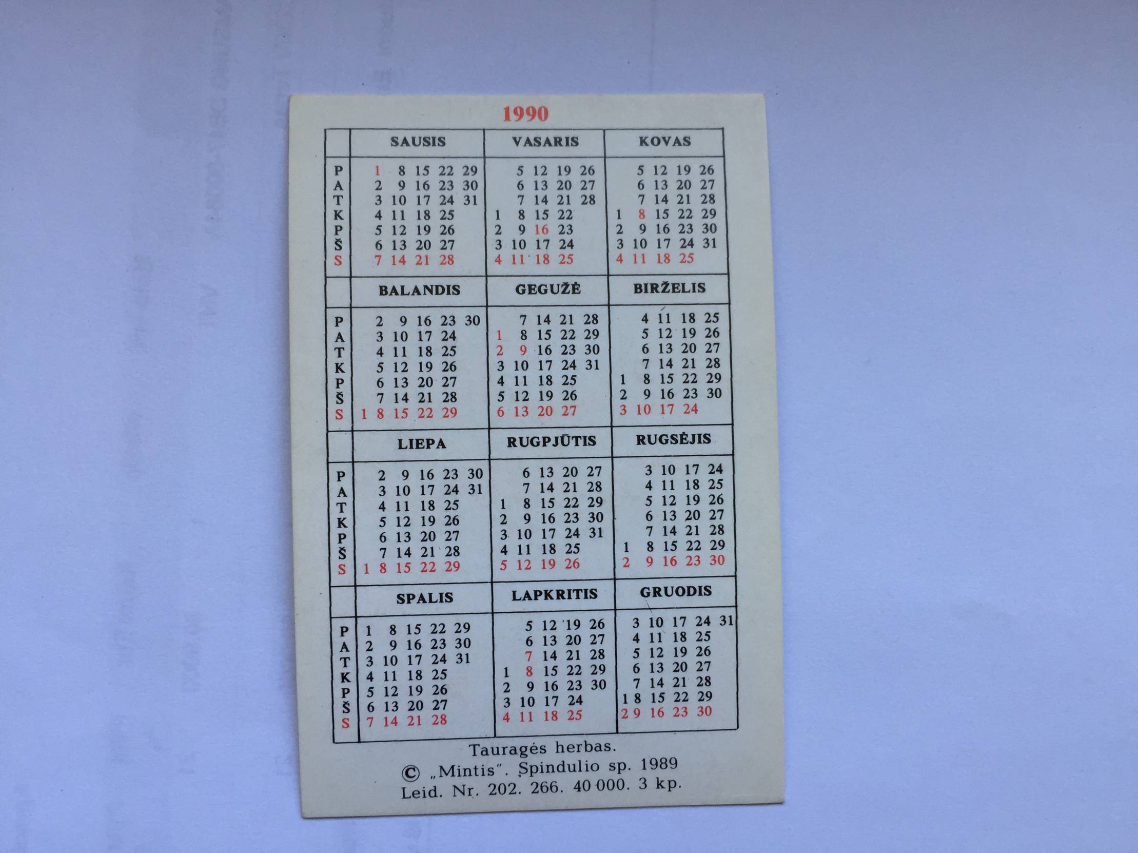 Tauragė Kalendoriukas 1990m.