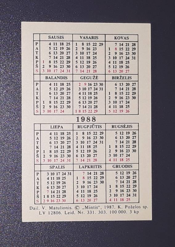 Kalendoriukas Lietuva 1988 WILDLIFE =04=