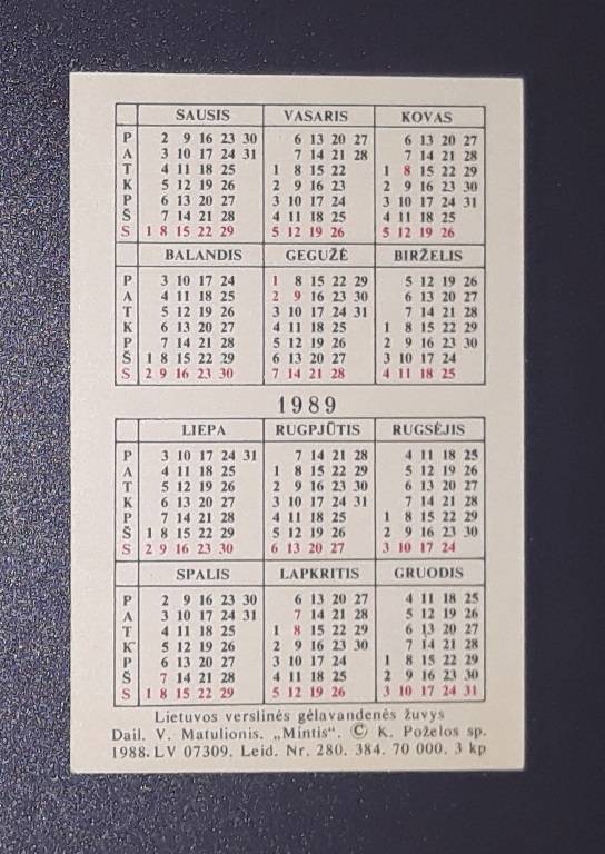 Kalendoriukas Lietuva 1989 WILDLIFE =10=