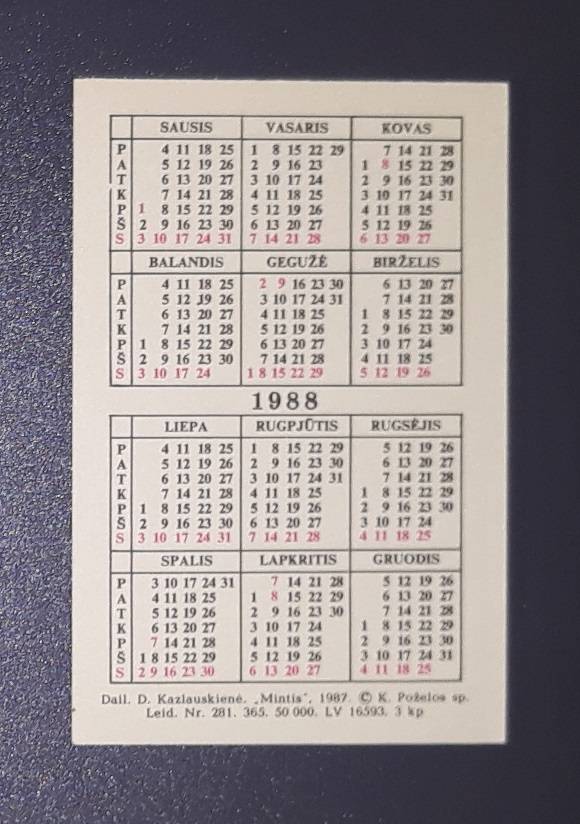Kalendoriukas Lietuva 1988 WILDLIFE Vab =01=