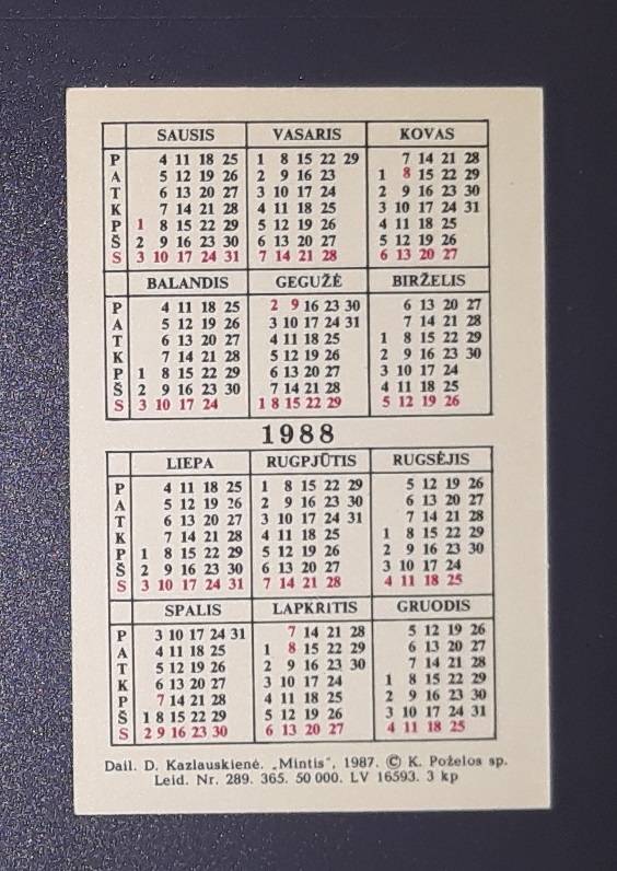 Kalendoriukas Lietuva 1988 WILDLIFE Vab =09=