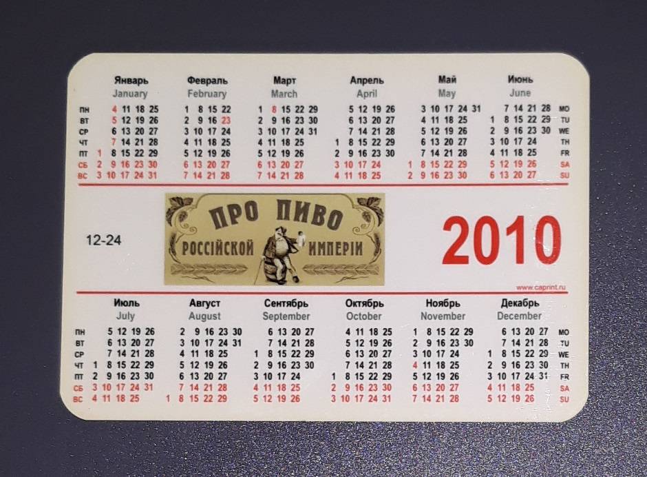 Kalendoriukas Rusija 2010 Alus 12-24