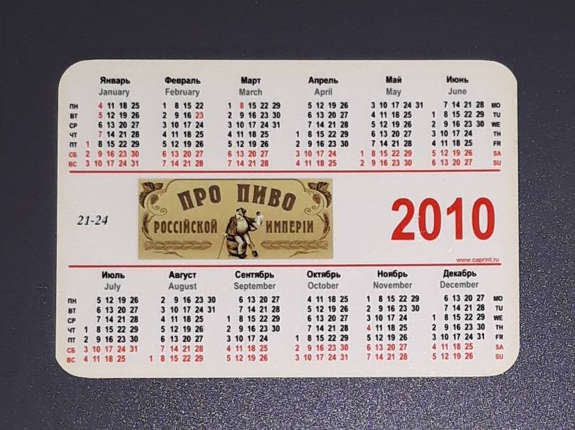 Kalendoriukas Rusija 2010 Alus 21-24
