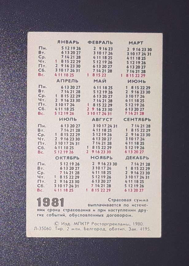 Kalendoriukas CCCP 1981 Draudimas 129-2