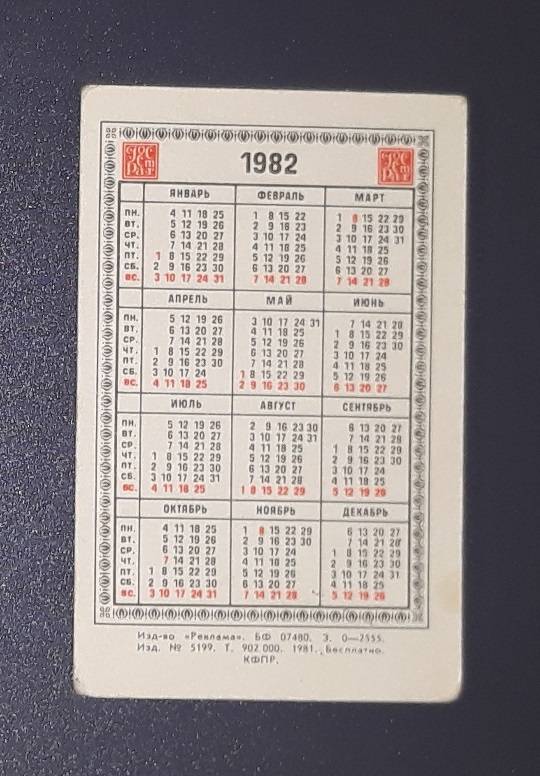 Kalendoriukas CCCP 1982 Draudimas 104-2