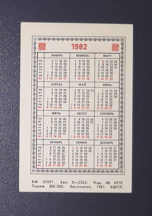 Kalendoriukas CCCP 1982 Draudimas 113