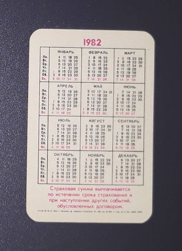 Kalendoriukas CCCP 1982 Draudimas 115