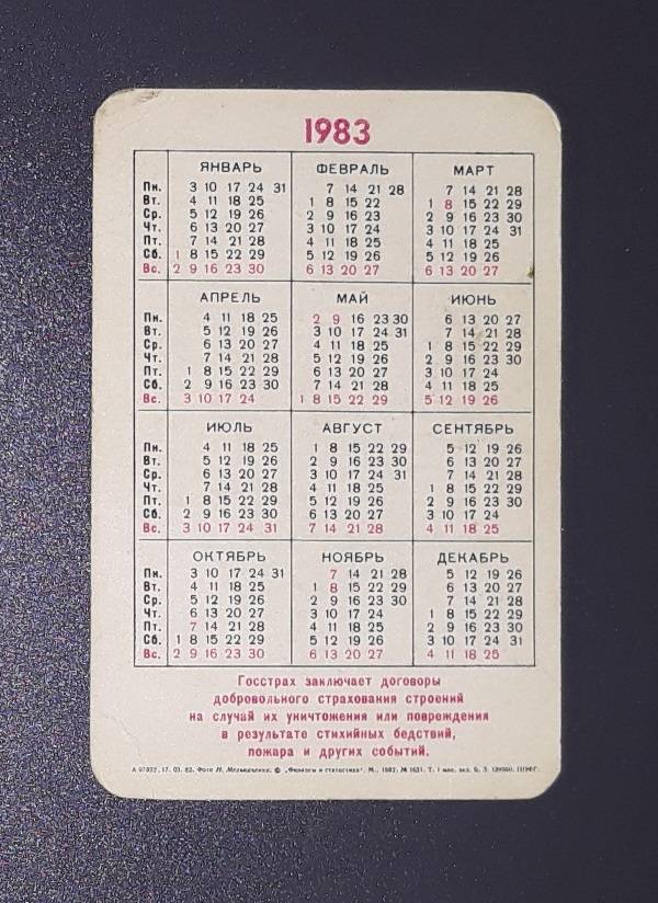 Kalendoriukas CCCP 1983 Draudimas 082-2