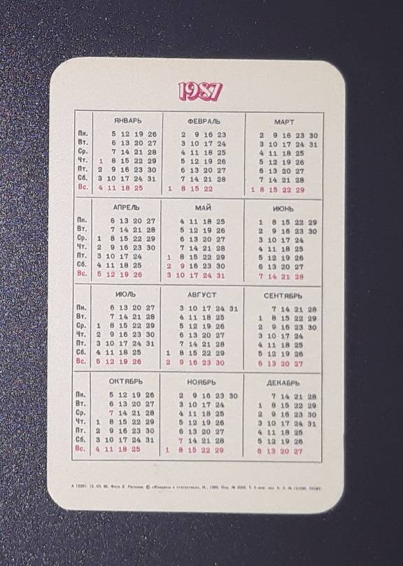 Kalendoriukas CCCP 1987 Draudimas 147