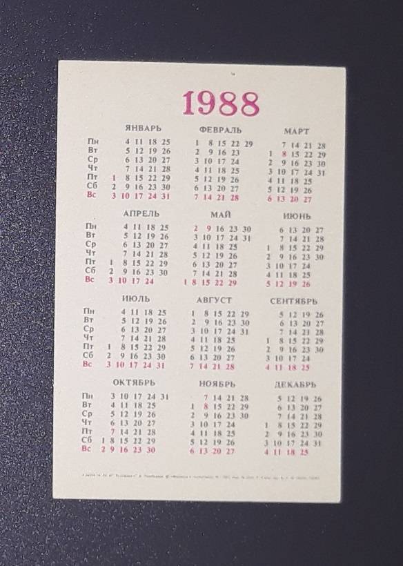 Kalendoriukas CCCP 1988 Draudimas 104