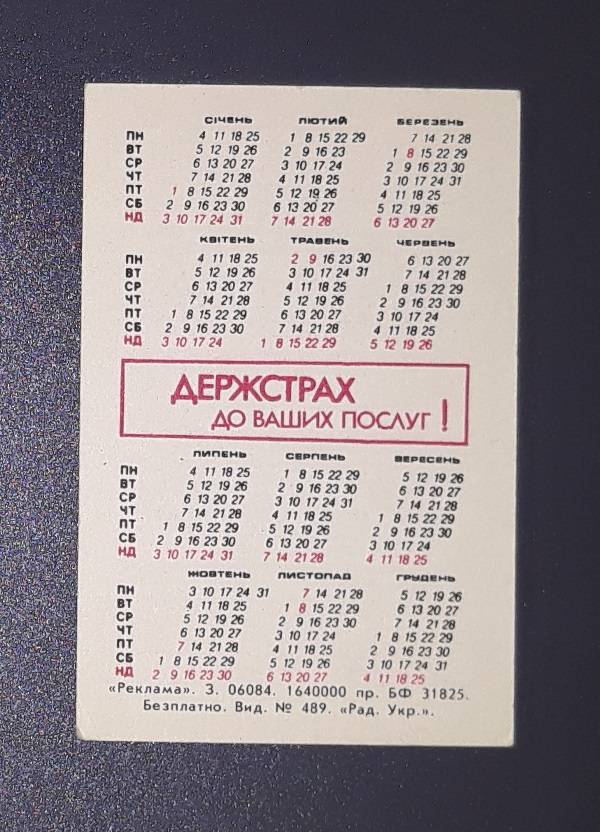 Kalendoriukas CCCP 1988 Draudimas 108