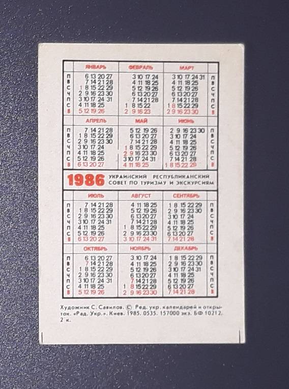 Kalendoriukas CCCP 1986 Turizmas 142-2