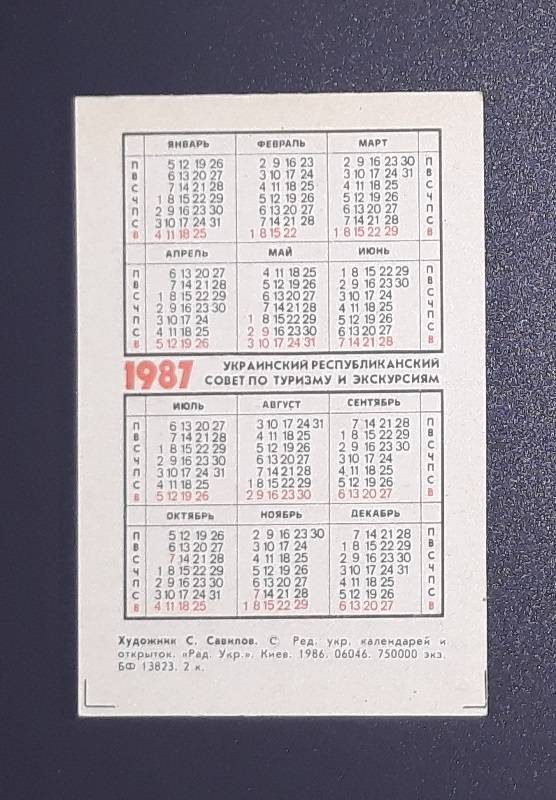 Kalendoriukas CCCP 1987 Turizmas 062-3