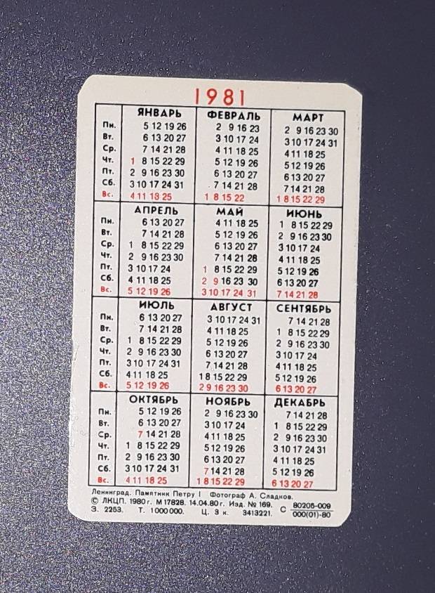 Kalendoriukas CCCP 1981 Leningradas 071-2