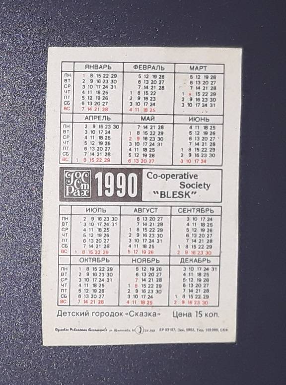 Kalendoriukas CCCP 1990 Nikolajevas 151 Ukraina