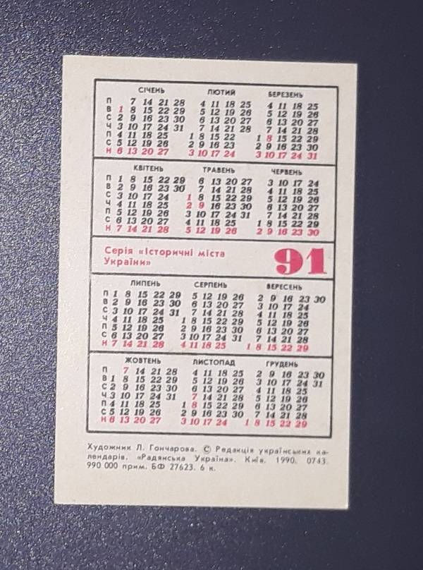 Kalendoriukas CCCP 1991 Lvovas 118 Ukraina