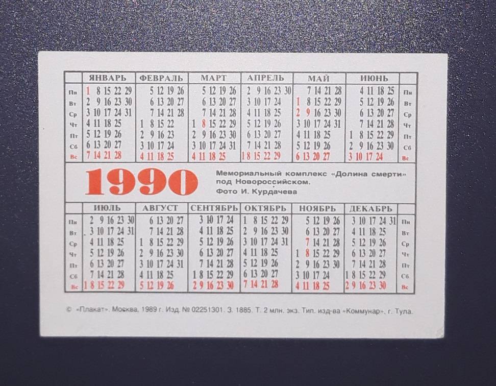 Kalendoriukas CCCP 1990 Novorossijskas 160