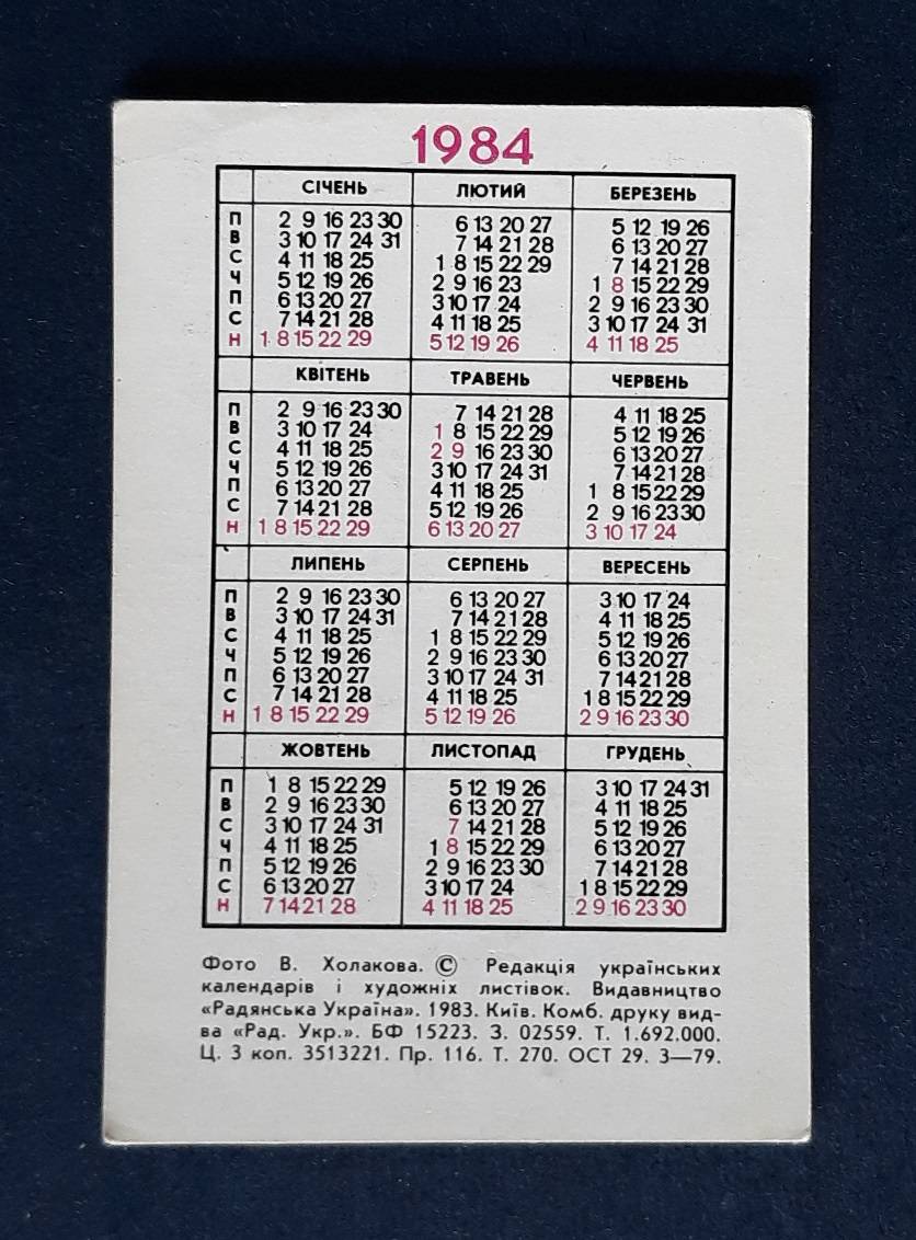 Kalendoriukas CCCP 1984 Gėlės 060