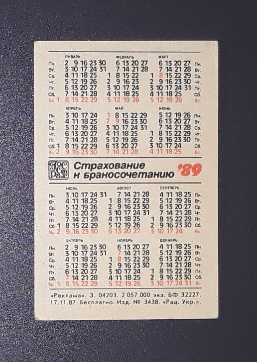 Kalendoriukas CCCP 1989 Draudimas 143