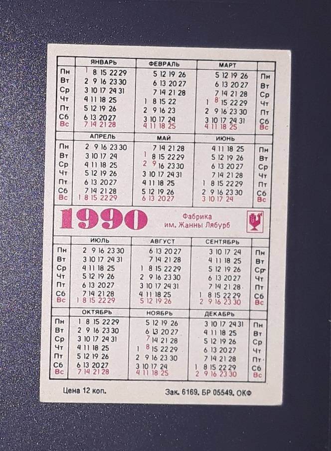 Kalendoriukas CCCP 1990 Modelė 191