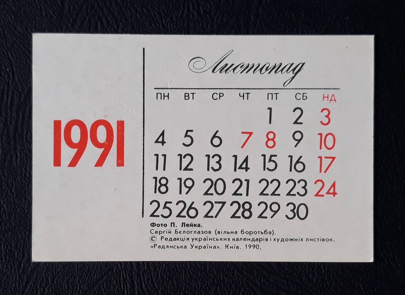 Kalendoriukas CCCP 1991 Sportas 052 Imtynės