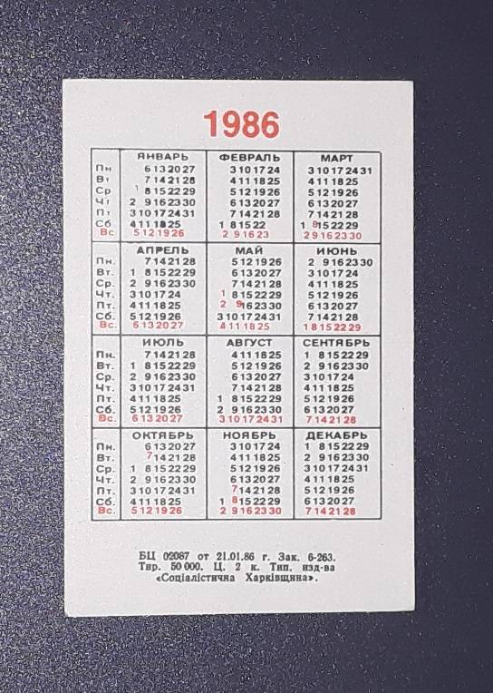 Kalendoriukas CCCP 1986 Automobilis 160