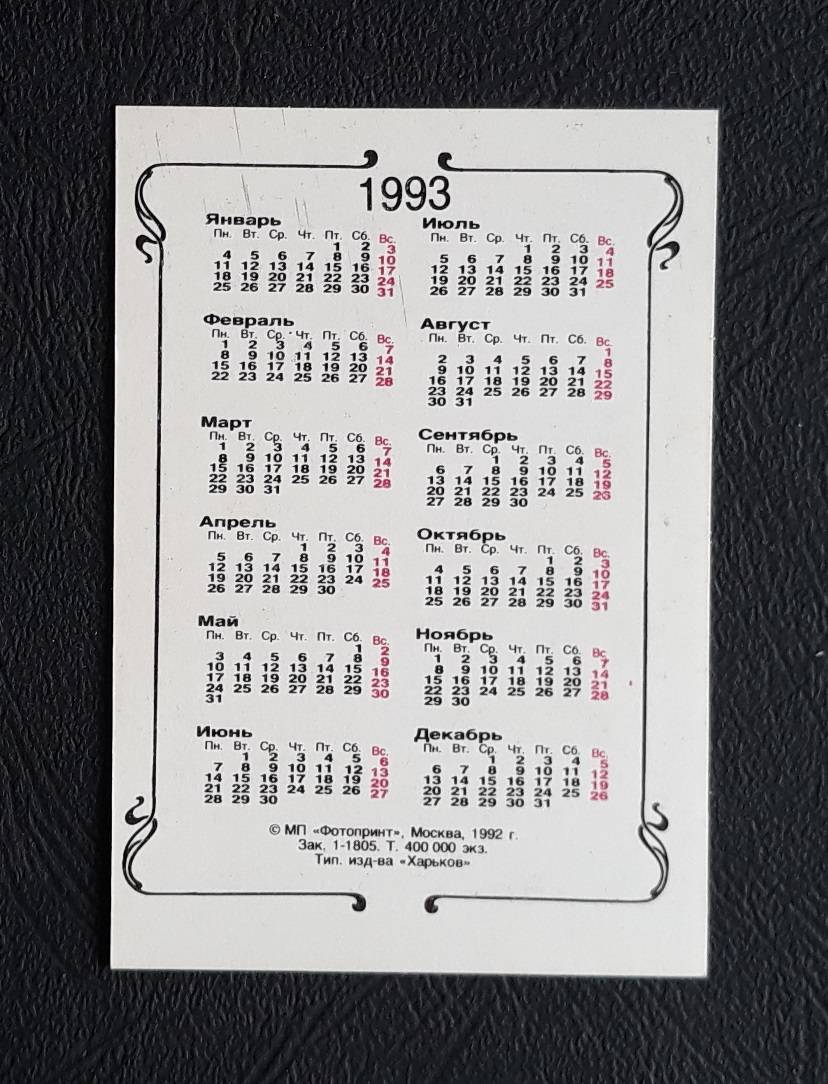 Kalendoriukas Rusija 1993 Porcelianas Medžioklė