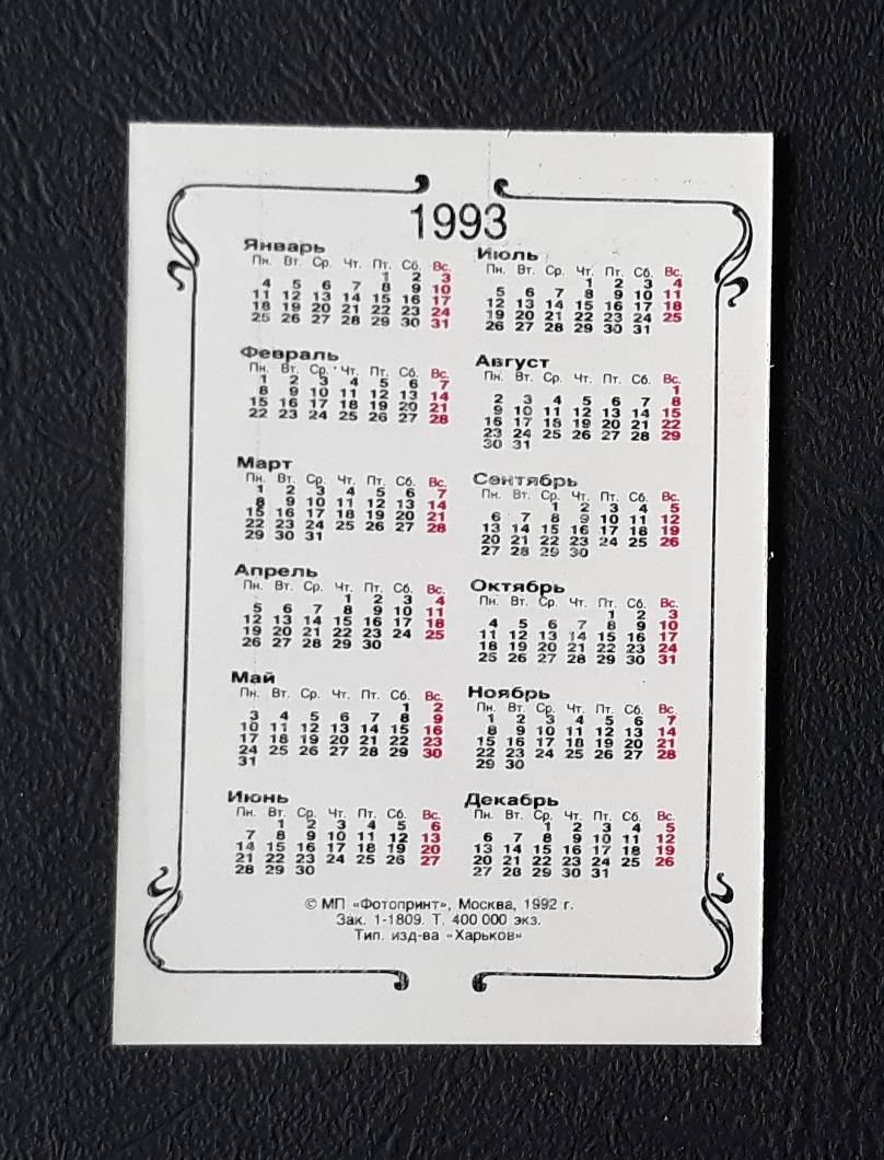 Kalendoriukas Rusija 1993 Porcelianas Medžioklė