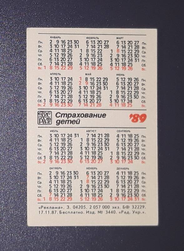 Kalendoriukas CCCP 1989 Draudimas 144