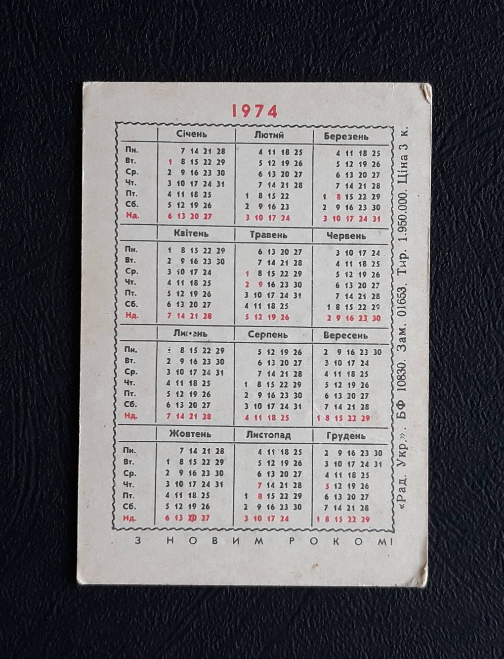 Kalendoriukas CCCP 1974 Taut.rūbai 018-3 Muzika