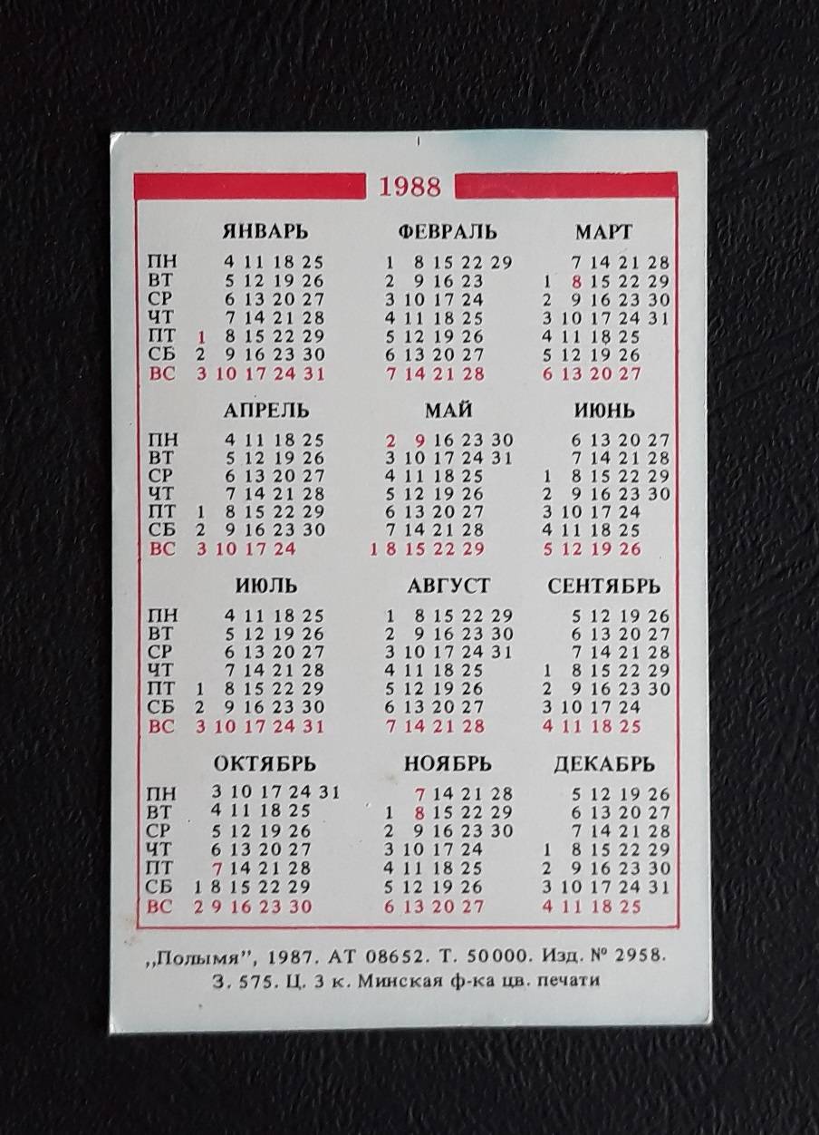 Kalendoriukas CCCP 1988 Taut.rūbai 087