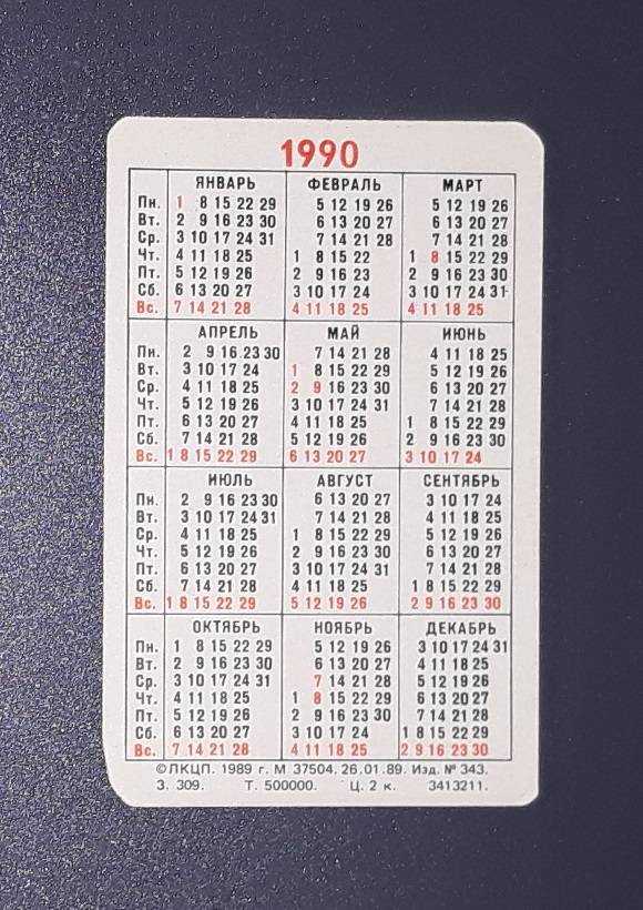 Kalendoriukas CCCP 1990 Leningradas 065-2