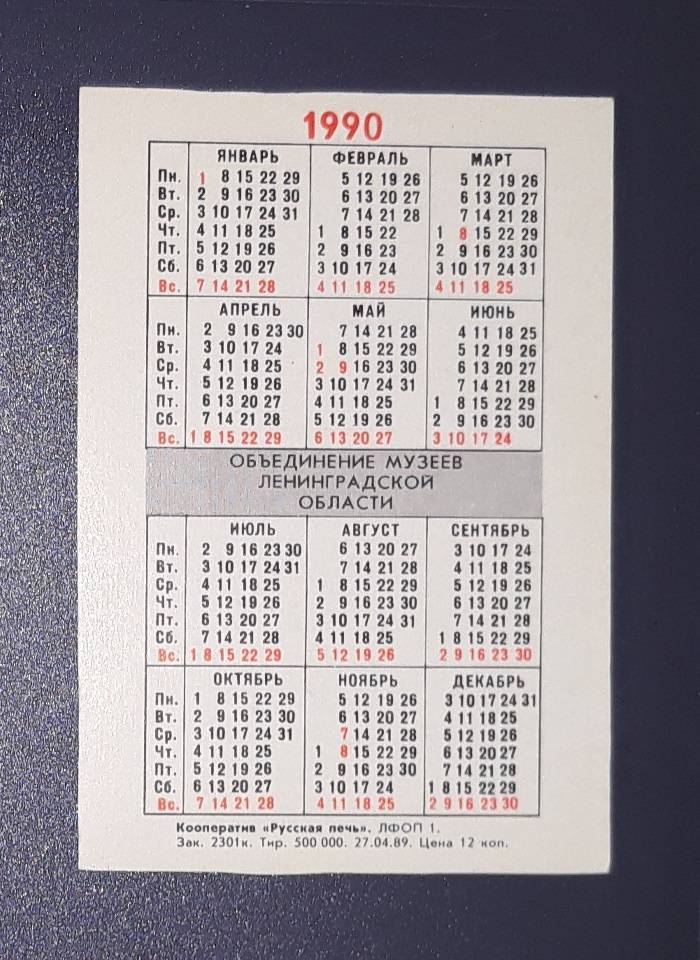 Kalendoriukas CCCP 1990 Leningradas 145