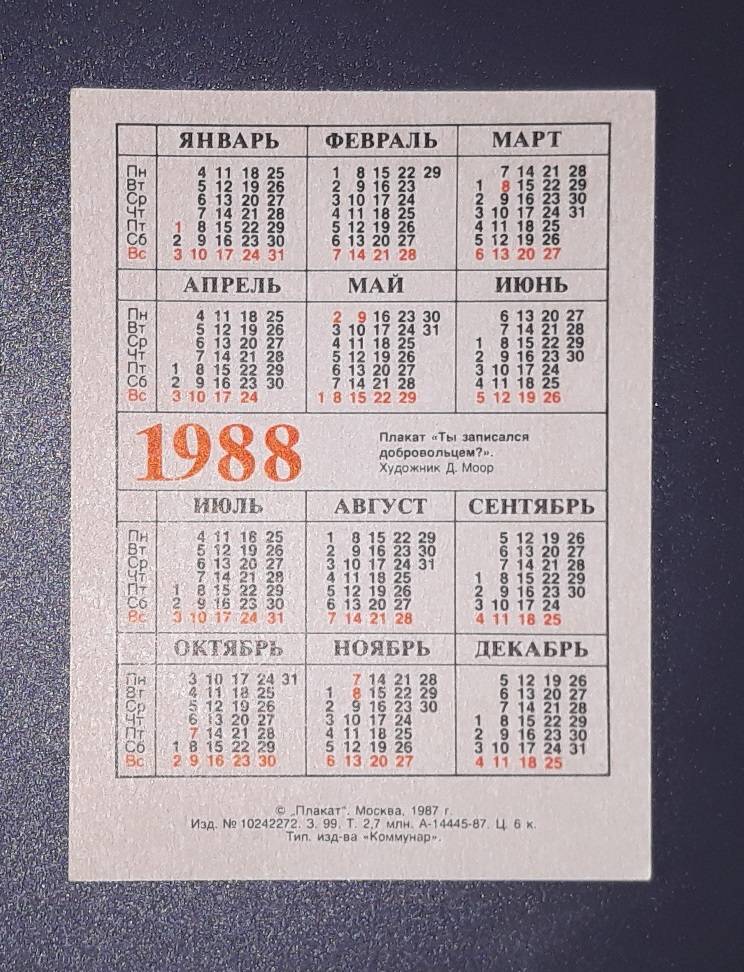 Kalendoriukas CCCP 1988 Armija 057 Poster