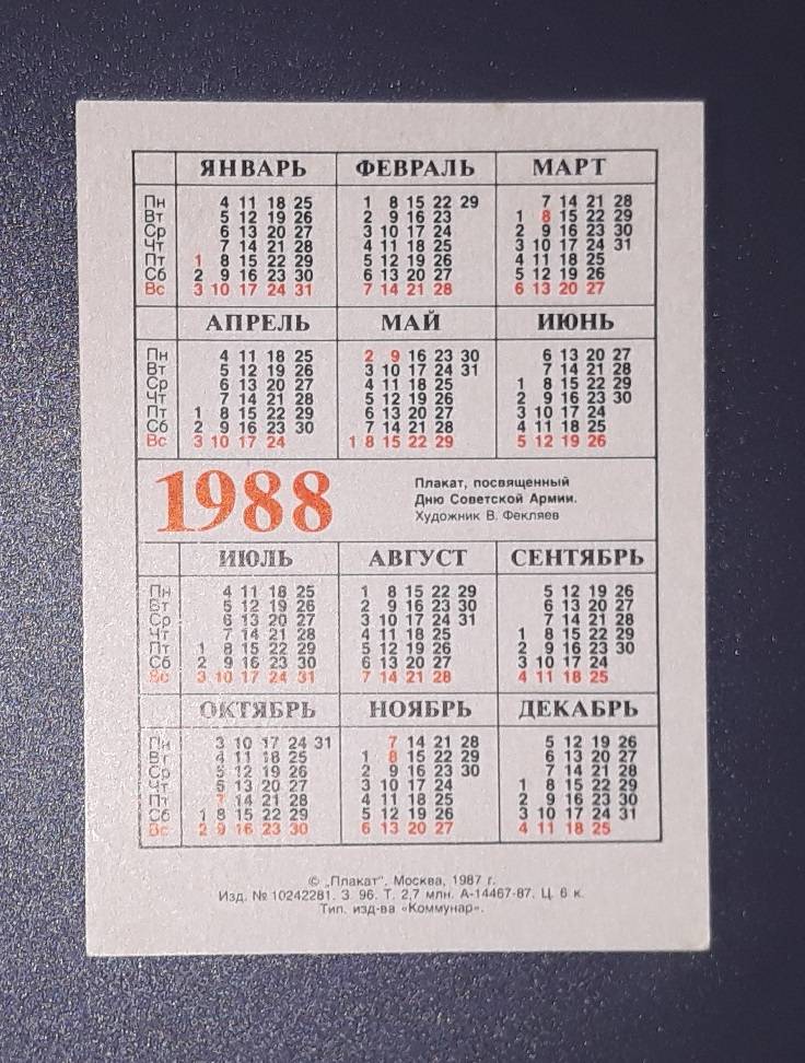 Kalendoriukas CCCP 1988 Armija 115 Poster